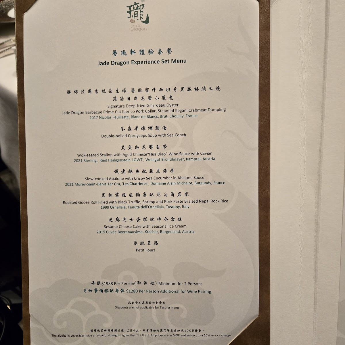 Nestled in the heart of Macao, Jade Dragon offers an exceptional culinary journey through the finest Cantonese cuisine. With its elegant decor curated from jade, crystal, and fine woods, the restaurant sets a luxurious ambiance for diners seeking unique gastronomic experiences.